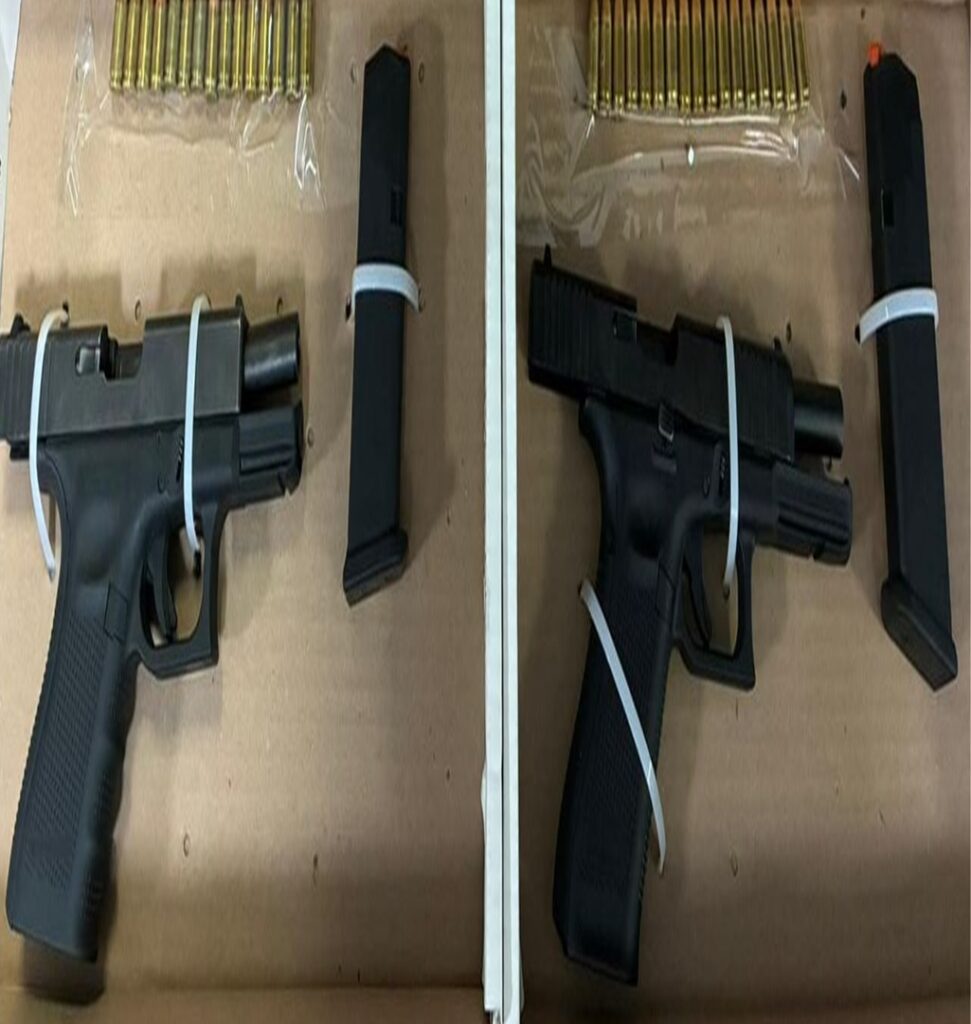 Con la intervención del operativo se logró asegurarles dos armas de fuego calibre .9 mm, con cargadores y más de 30 cartuchos, cuando fueron sorprendidos en un vehículo Buick, línea Enclave, sin placas de circulación y con reporte de robo en el extranjero.