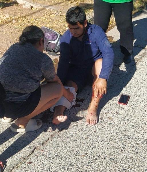 Lesiones profundas presentó un motociclista tras impactarse contra un vehículo sedán la tarde del jueves en la colonia Miguel Hidalgo, en Guaymas. El joven, identificado como César F., de 20 años de edad, sufrió una herida por avulsión en la pierna izquierda, además de golpes en distintas partes del cuerpo, mientras que su acompañante, Carolina, resultó con lesiones menores.