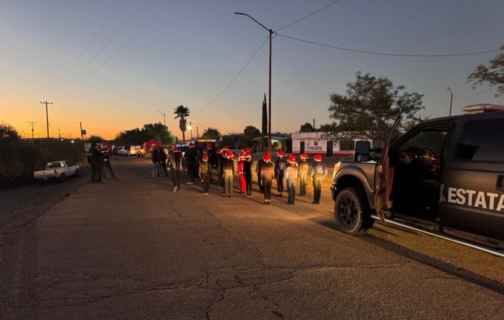 Tubutama, Sonora.- Grupos operativos de la Secretaría de Seguridad Pública de Sonora junto a Policía Municipal de Tubutama acompañaron a las familias de la localidad en desfile navideño, como parte de las acciones en proximidad ciudadana, vigilancia y convivencia en esta época decembrinas.
