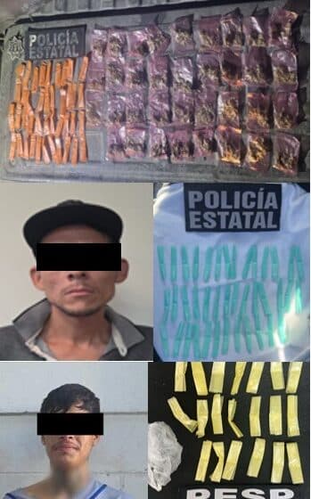 En una segunda intervención, derivada de los patrullajes preventivos y la presencia de elementos PESP, fue detenida una persona identificada como Santos “N”, de 31 años de edad, quien se encontraba en posesión de 40 envoltorios de sustancia con características similares al cristal, con un peso aproximado de 35 gramos, equivalentes a 175 dosis, en la colonia Olivos.