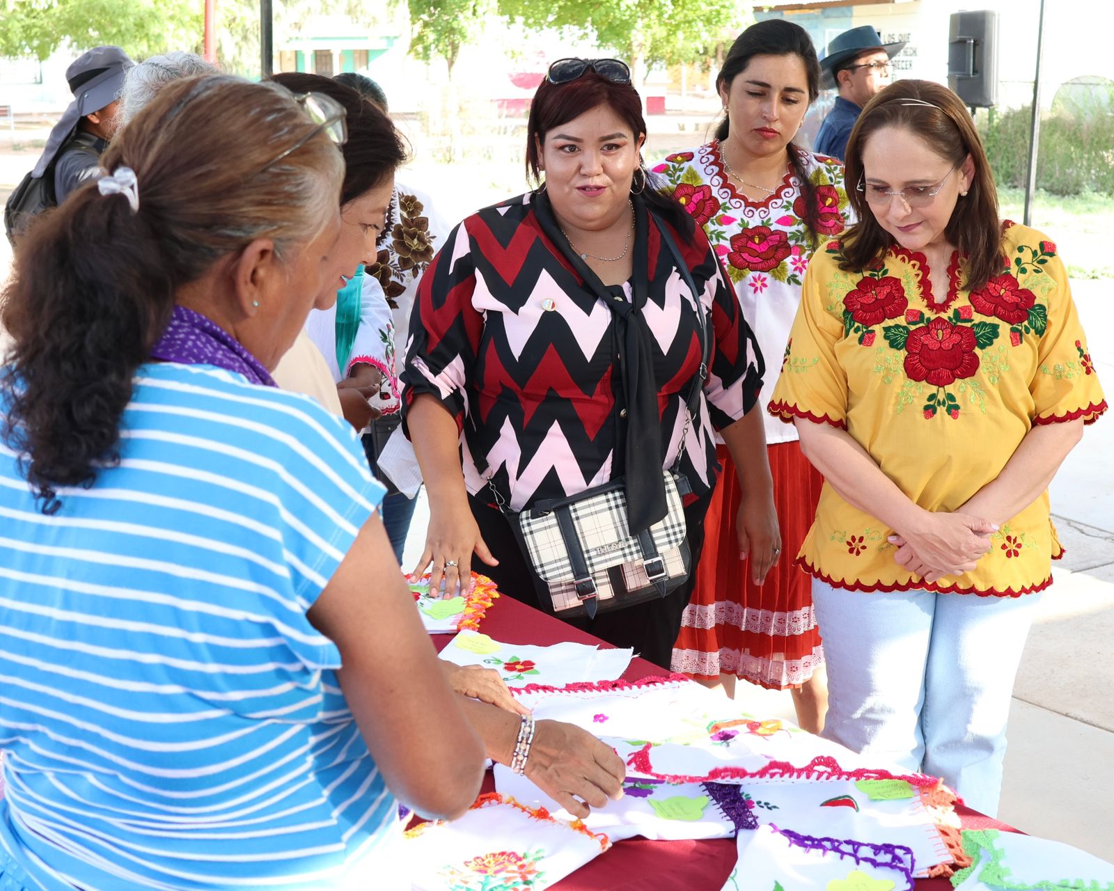 Por parte de las autoridades tradicionales, Dulce Karina Morales Amarillas, agradeció el apoyo de la presidenta municipal para llevar a cabo este curso, el cual les permitirá preservar esta tradición y solicitó más cursos de este tipo; a su vez, Isabel Ramirez Valenzuela, instructora del curso de bordados, resaltó el trabajo que realiza la alcaldesa para beneficiar a las familias con este tipo de actividades.