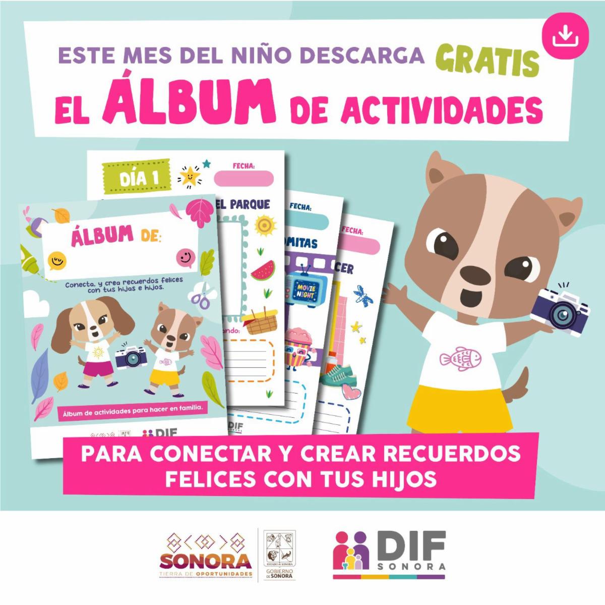 A través de su sitio web oficial, https://dif.sonora.gob.mx/, en el menú Acciones, se puede descargar de manera gratuita un álbum de actividades y afirmaciones positivas, que incluye 30 propuestas divertidas y creativas para compartir en familia. Estas actividades están pensadas para realizarse en casa, en parques o en espacios públicos, sin necesidad de realizar grandes gastos.