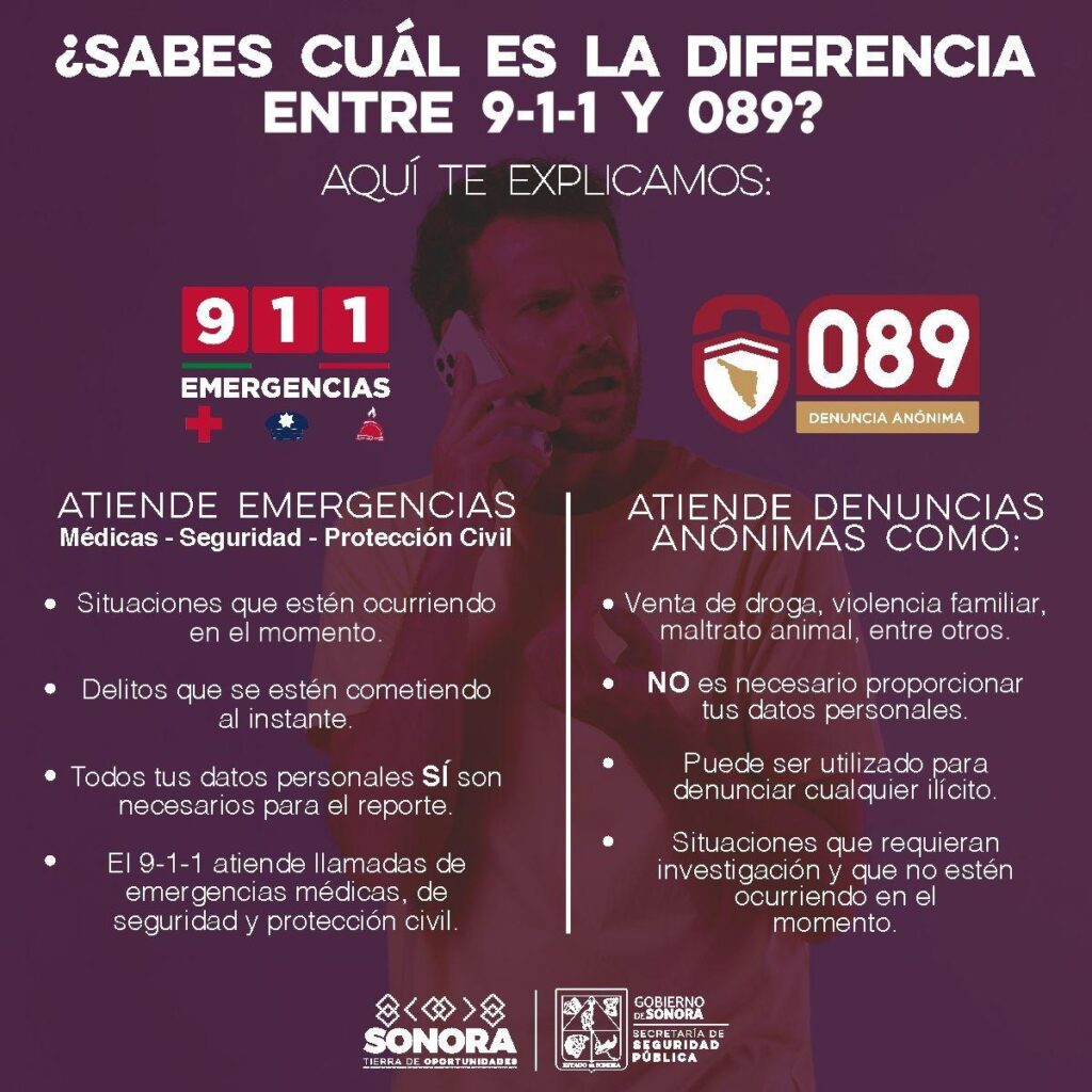 Hermosillo, Sonora.- Para optimizar el servicio que brindan las líneas 9-1-1 para reportar emergencias y 089 para denunciar delitos en forma anónima y segura, el Gobierno de Sonora, por medio de la Secretaría de Seguridad Pública (SSP), exhorta a la ciudadanía a utilizarlas con responsabilidad.