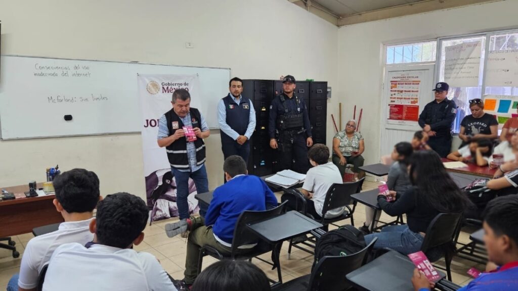 En apoyo a la estrategia que impulsa el Gobierno de México, autoridades de la Secretaría de Seguridad Pública (SSP) en Sonora visitaron el plantel para interactuar con el alumnado e impartir sesiones informativas que fortalezcan la construcción de paz en sus comunidades.