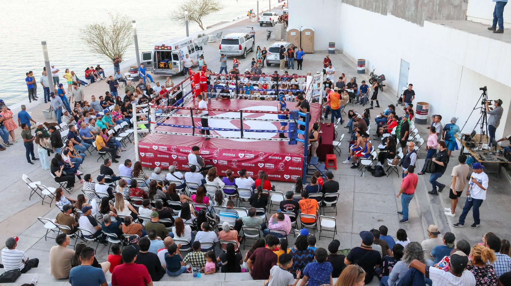 La cartelera boxística femenil y varonil, se desarrolló en la explanada del malecón turístico ‘Hilario Rodríguez Malpica’, en la parte posterior del conservatorio de música ‘Fray Ivo Toneck’, donde la senadora, Lorenia Valles Sampedro, destacó que el propósito de este importante evento, es impulsar a las nuevas generaciones de boxeadores sonorenses.