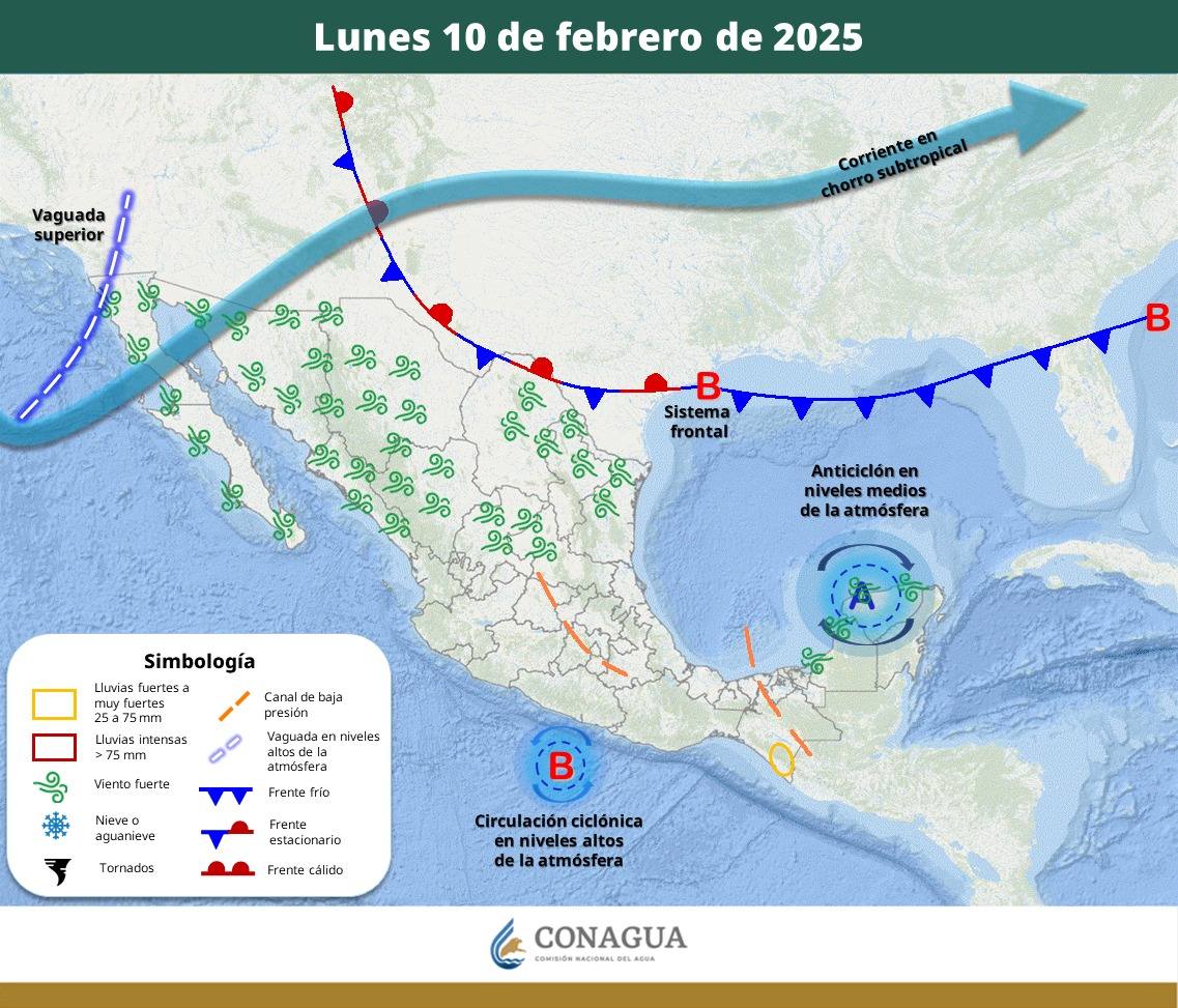 Por otro lado, se pronóstica el ingreso de un nuevo frente frío durante los días 14 y 15 de febrero, ocasionando rachas de viento, un descenso en las temperaturas y probabilidad de lluvias dispersas sobre algunos puntos del estado.