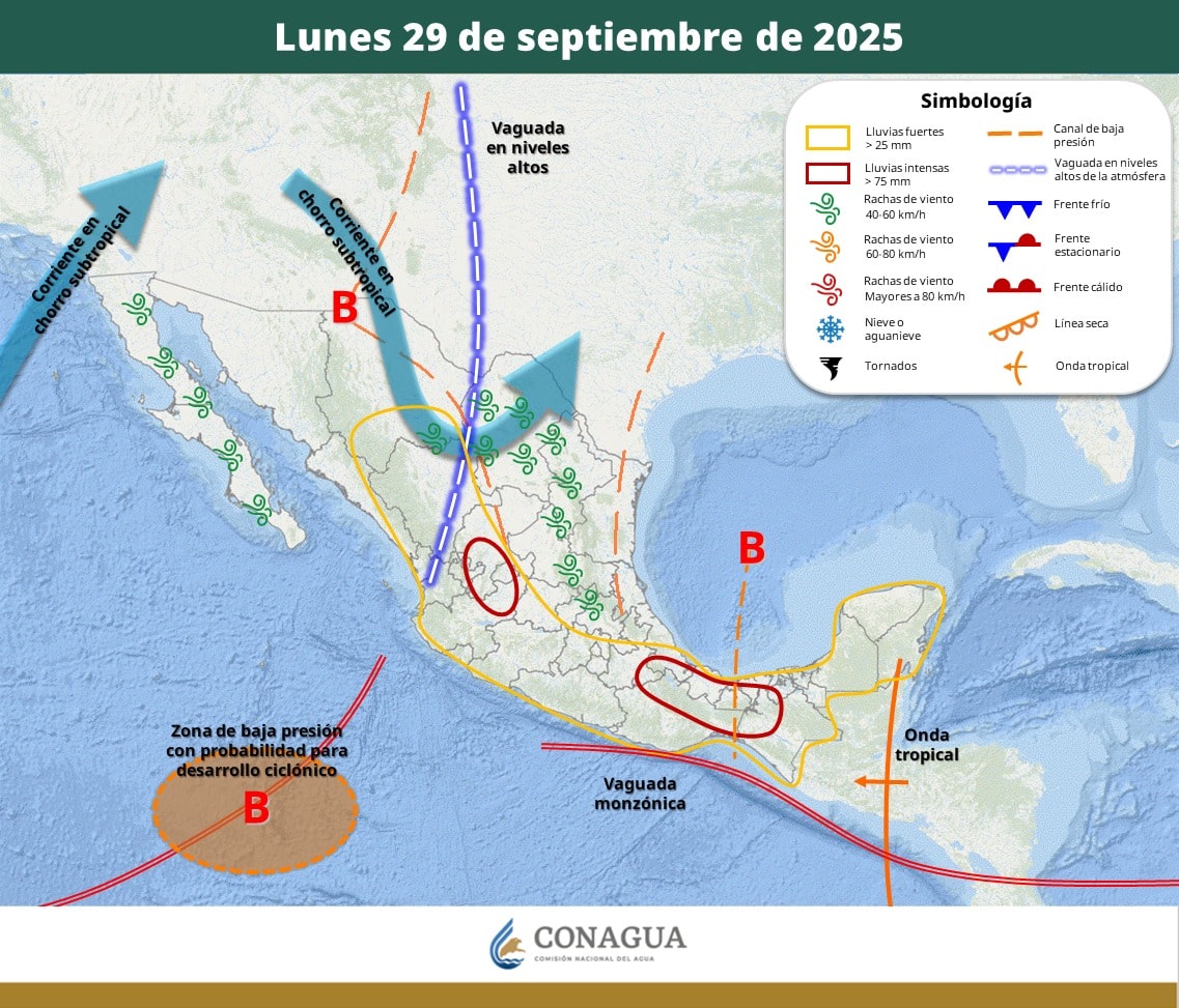 Por otro lado, un nuevo frente frío se aproximará a la frontera noroeste del país durante los días 03 y 04 de octubre, ocasionando rachas de viento moderadas y un ligero descenso en las temperaturas durante el periodo.