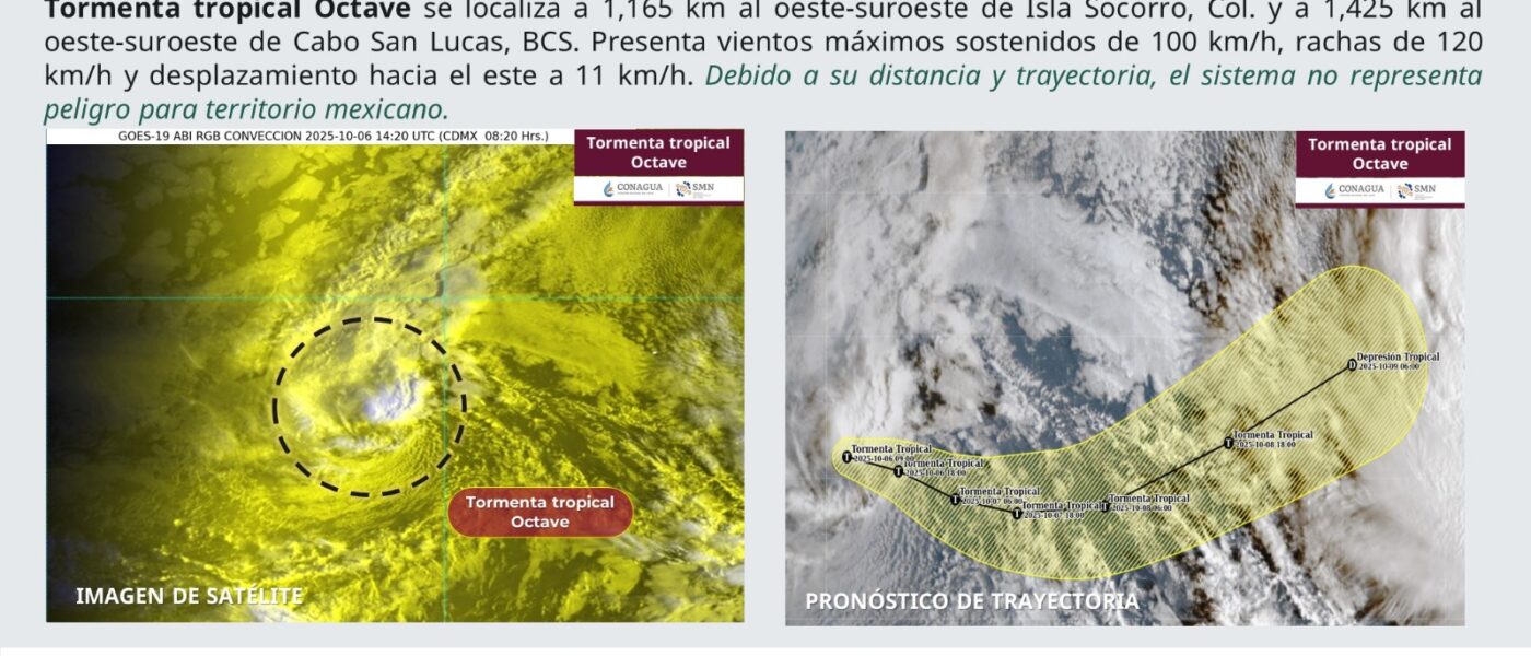 Se mantiene en vigilancia sobre el Océano Pacifico el ciclón tropical “Priscilla”. Se espera que se mantenga desplazándose paralelo a la costa occidente de México hacia el noroeste del país. Sus bandas nubosas podrían ocasionar algunas lluvias sobre el estado de Sonora en el periodo que comprende los días 11 a 12 de octubre.
