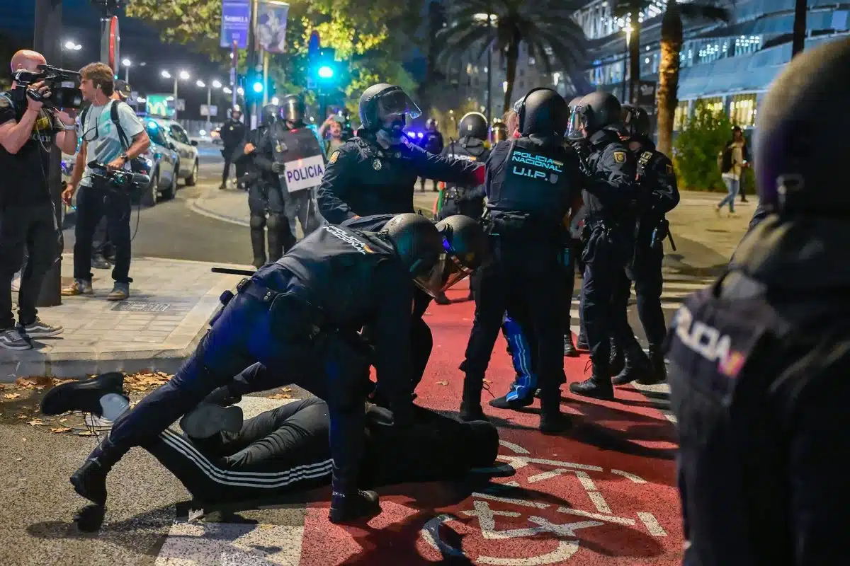 La tensión entre las fuerzas del orden y los manifestantes, algunos de ellos encapuchados, derivó en la detención de cinco personas, indicó una fuente policial a Afp.