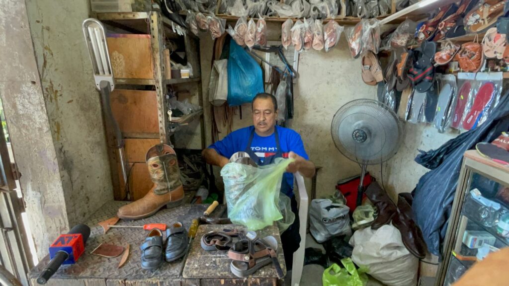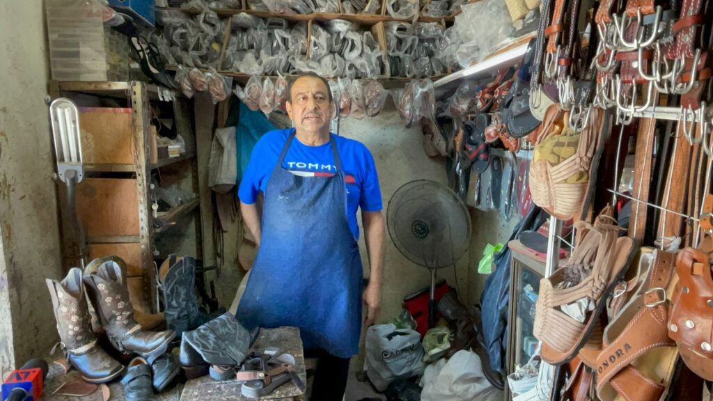 Todos los días, Carlos Hiram Delgado se levanta temprano para irse a trabajar a un pequeño puesto del Mercado Municipal Centro, en Empalme, en donde desde hace 39 años se ha dedicado a la reparación de calzado.