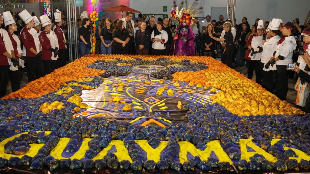 Como parte del programa, la Universidad Vizcaya de las Américas, campus Guaymas, ofreció una degustación de 3504 piezas de pan de muerto, elaboradas por estudiantes de la Licenciatura en Gastronomía.