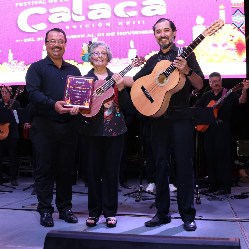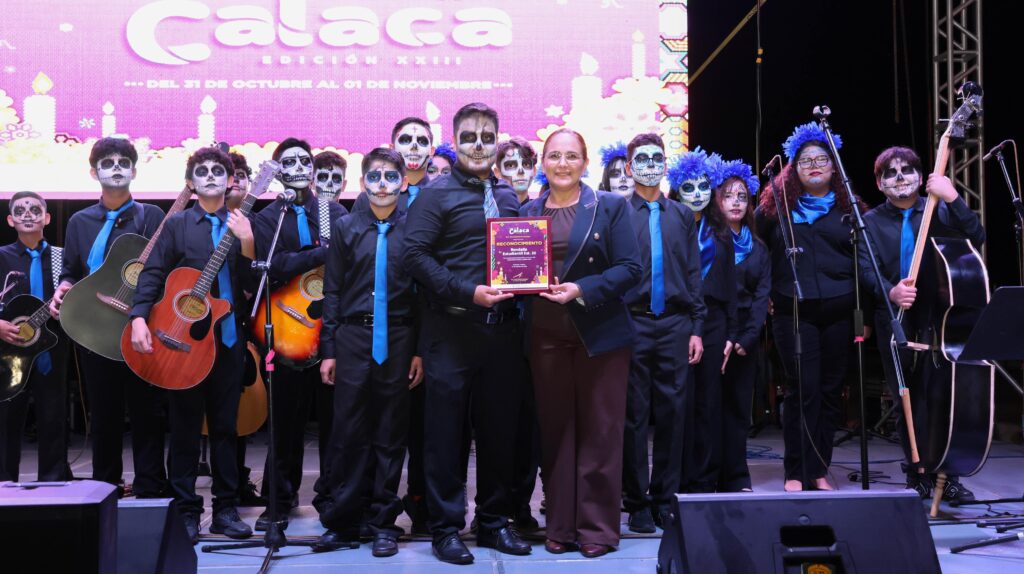Durante su mensaje, destacó la importancia de preservar y difundir las tradiciones del Día de Muertos como símbolo de identidad cultural, subrayando que el Festival de la Calaca es un espacio para recordar con cariño a nuestros seres queridos y mantener vivas las costumbres que nos unen como comunidad.