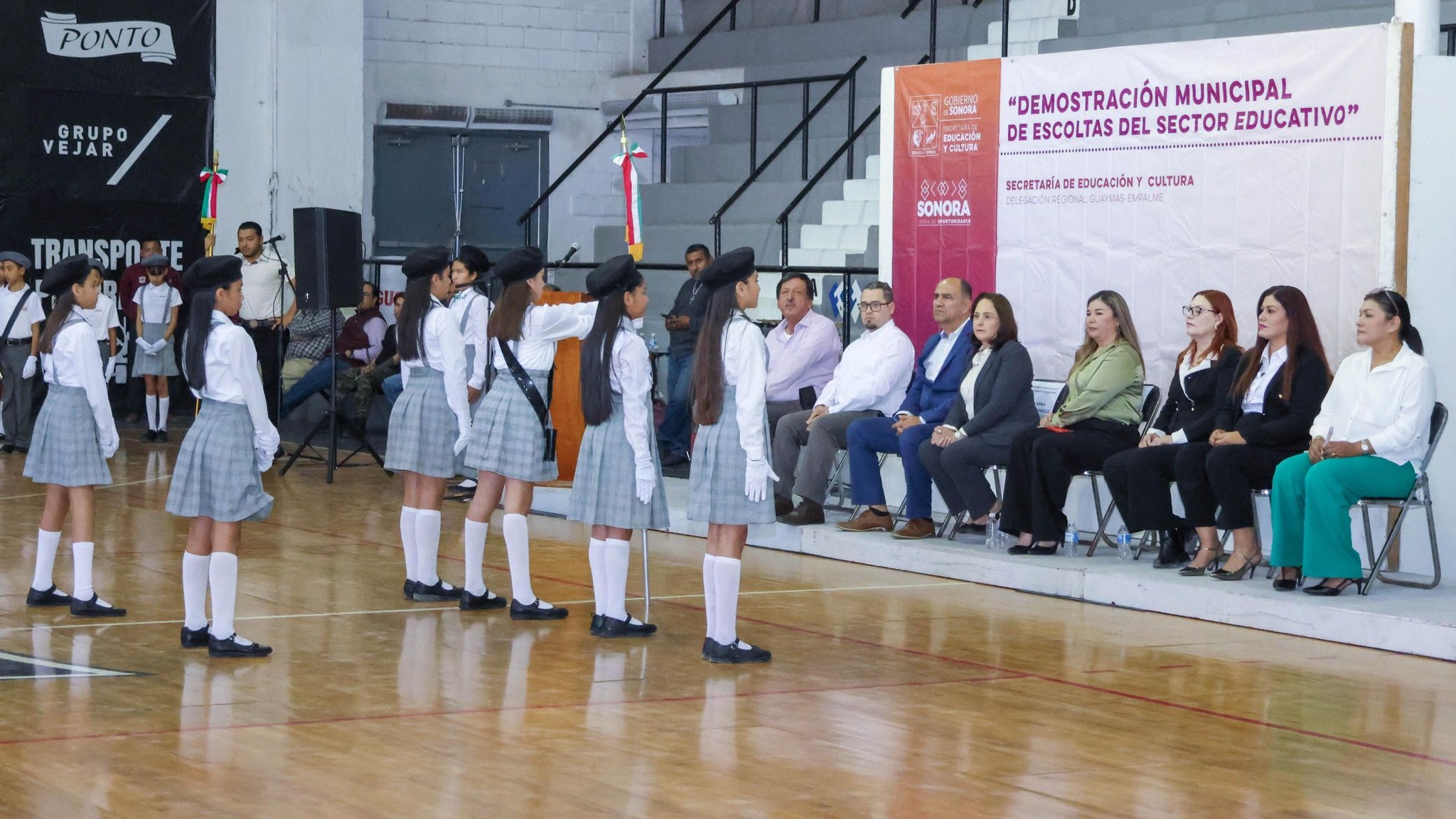 El titular de la SEC, Froylán Gámez Gamboa, indicó que Guaymas y Empalme fueron la sede de la 23 Demostración Municipal de Escoltas del Sector Educativo en la que participaron más de 30 planteles, desde nivel preescolar hasta superior, cuyo alumnado dio un ejemplo de gallardía y respeto a los símbolos patrios.