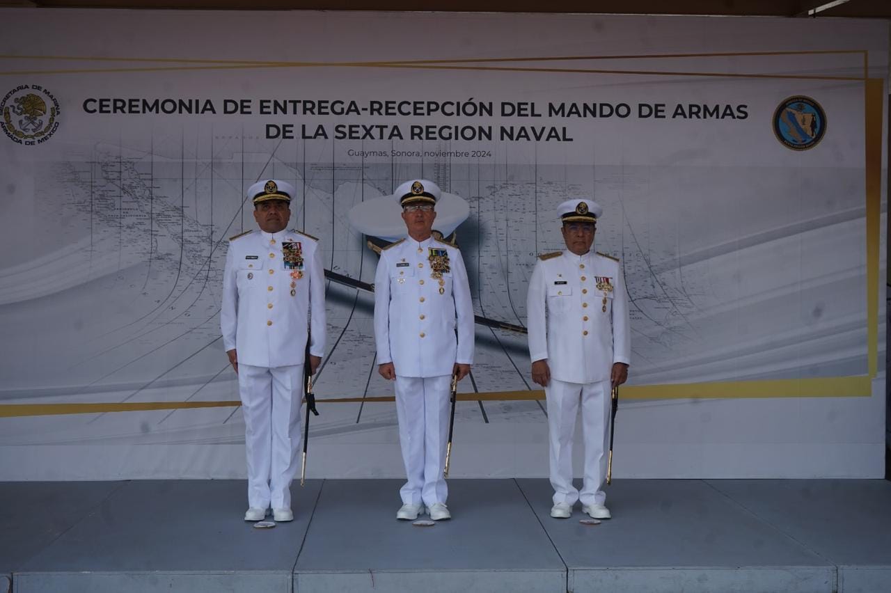 Atestiguando la ceremonia naval la presidenta municipal de Guaymas, Karla Córdova González, así como de autoridades de los tres niveles de Gobierno, el Vicealmirante Daniel Escobedo Escobedo recibió el mando de la Sexta Región Naval, por entrega que le hizo el Vicealmirante Ildefonso Méndez Gómez, con la intervención del almirante Francisco Guillermo Escamilla Cázares, oficial mayor, en representación de Alto Mando de la Armada de México.