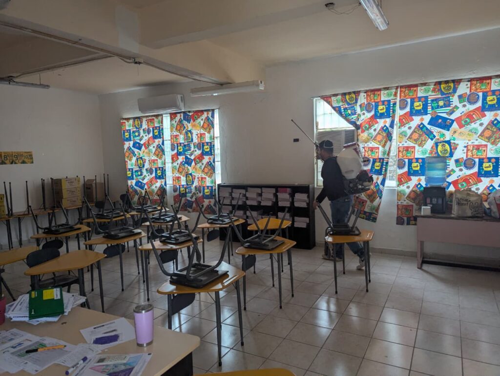 Con el propósito de garantizar espacios seguros y saludables para la comunidad escolar, la Secretaría de Educación y Cultura (SEC) y Salud Estatal Sonora llevaron a cabo una jornada de fumigación y limpieza en la Escuela Primaria Estatal Loreto Encinas y la Escuela Primaria Federal Jesús García.