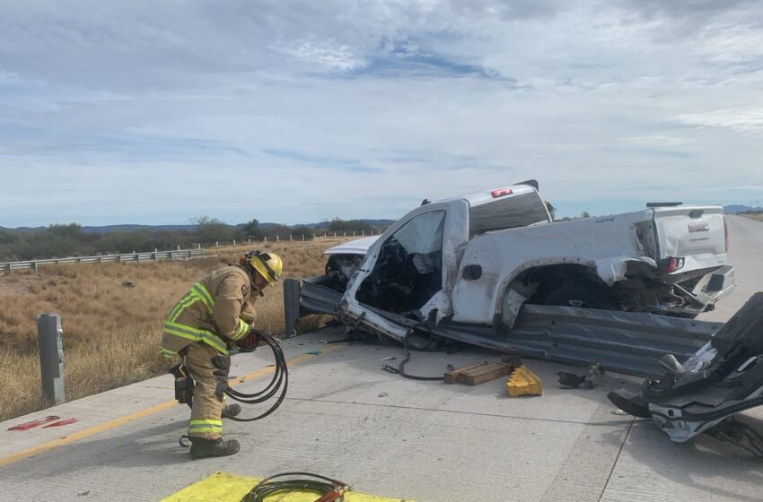 Eran alrededor de las 12:30 horas cuando a través de la línea de emergencia 9-1-1, se informó que en la carretera Federal 15, entre los Arrieros y la gasolinera el Valiente, una camioneta que circulaba en dirección de norte a sur, se impactó de lleno contra una de las barreras metálicas de protección vial.