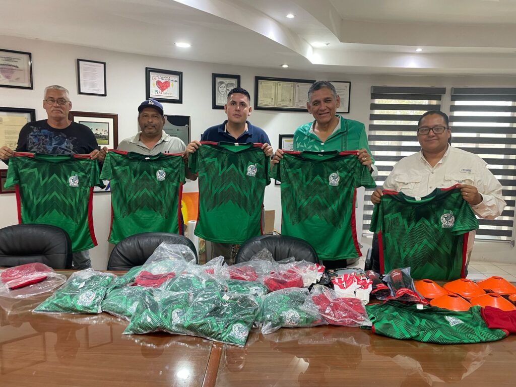 El alcalde de Empalme, Luis Fuentes Aguilar, entregó uniformes y material deportivo al presidente de la Liga Infantil y Juvenil, Quetza Ávila Landeros, así como al presidente de la Liga Municipal de Fútbol, Guillermo Murillo Montoya.