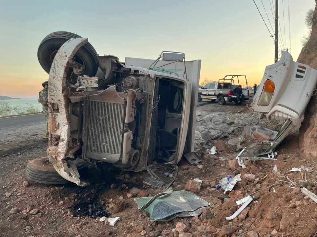 El chófer de la unidad, Dina, tipo dompe, en color blanco, sin placas de circulación, modelo 1985, así como el copiloto, fueron auxiliados por paramédicos de Cruz Roja Mexicana de Guaymas, para posteriormente ser trasladados al Hospital IMSS Bienestar.