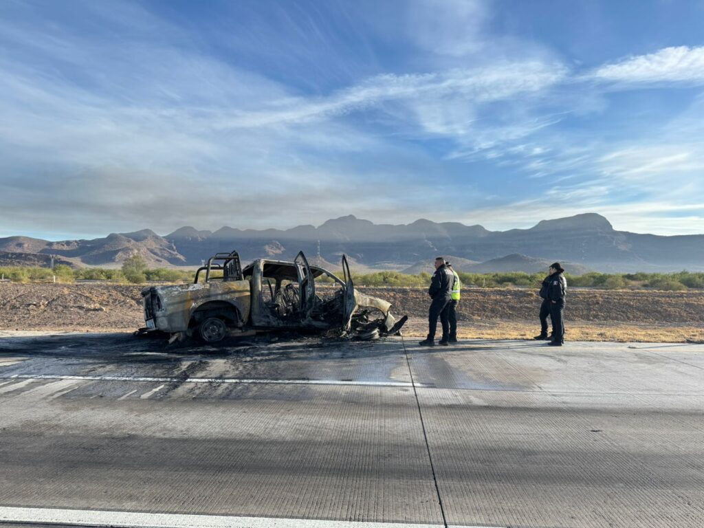 La unidad siniestrada en la que viajaban los elementos estatales era una Ram, tipo pick up, ‘C2’, modelo 2022, en color azul, con placas de circulación UP-297-6A del estado de Sonora, propiedad de la Secretaría de Seguridad Pública y conducida a la hora del percance, por el agente Ramón Alan.