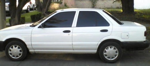 La unidad es un Nissan, Tsuru, sedán, color blanco, con engomado.