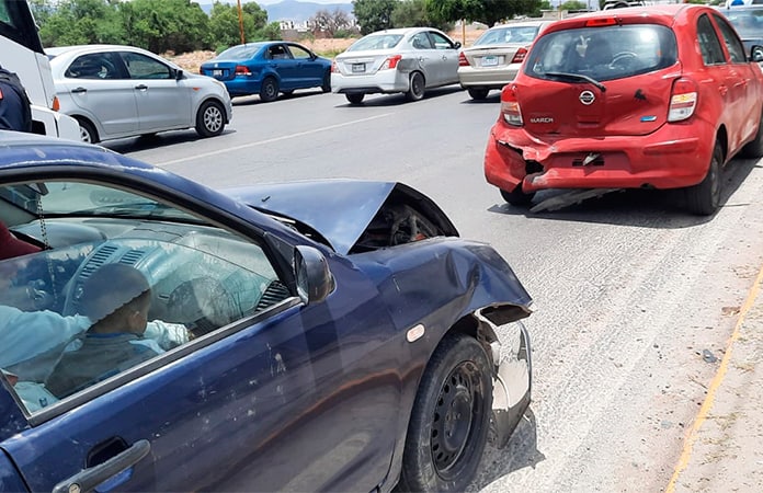 Ambos vehículos circulaban por la calzada, pero justo al llegar frente a una gasolinera, el sedán, disminuyó la velocidad, pero de esa maniobra no se percató a tiempo el conductor del Mazda y lo impactó por alcance.
