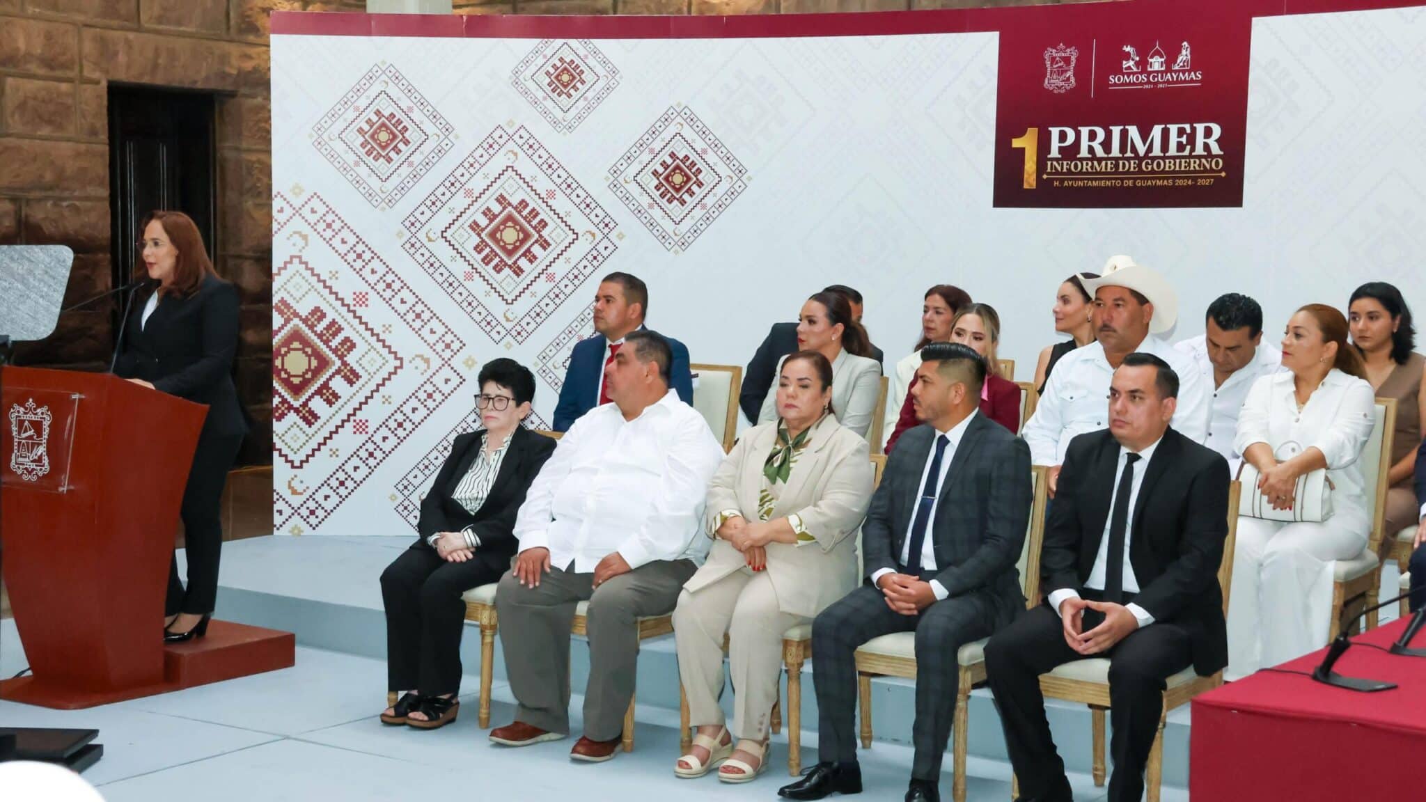 En sesión solemne número 24 de Cabildo, la presidenta municipal de Guaymas, Karla Córdova González, presentó ante la ciudadanía y autoridades el Primer Informe de Gobierno de la administración 2024-2027, donde expuso los resultados alcanzados durante el primer año de gestión, con base en el Plan Municipal de Desarrollo que establece cuatro ejes rectores para consolidar una administración más cercana a la gente, ordenada, segura, con oportunidades de crecimiento económico y servicios públicos de calidad.