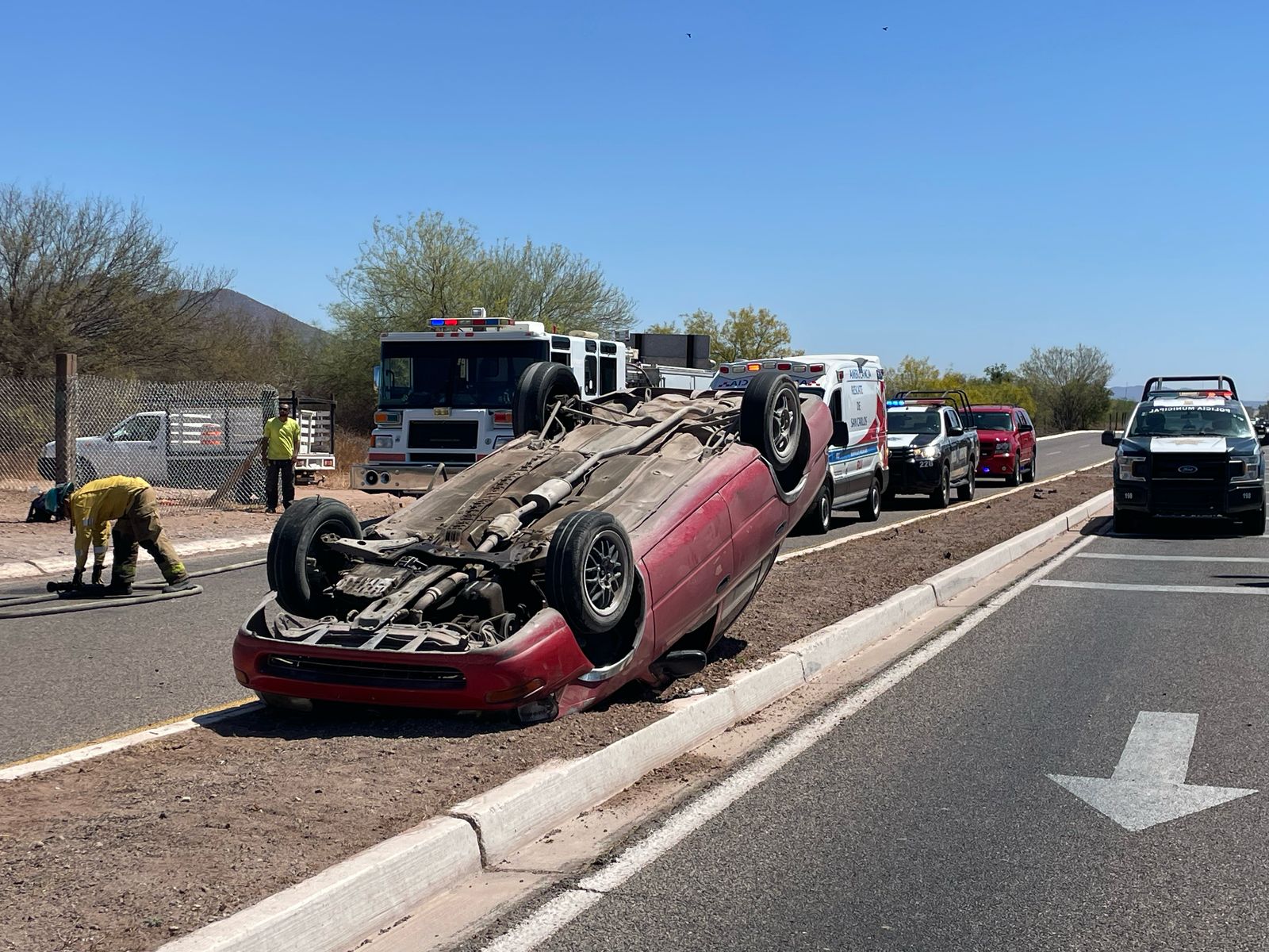 Paramédicos de Cruz Roja y del Rescate San Carlos llegaron al lugar del accidente, al igual que personal del Cuerpo de Bomberos de Guaymas, a fin de auxiliar a las dos personas que resultaron lesionadas en este accidente.