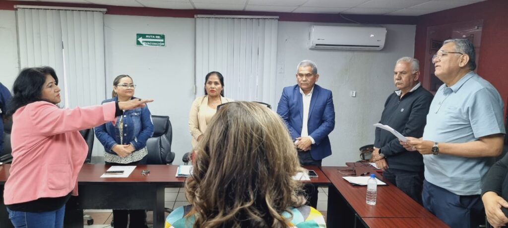 Posteriormente el alcalde, Luis Fuentes Aguilar, procedió a tomar protesta de ley a la regidora suplente que entrará en funciones como titular de la regiduría, Gloria Delfín Moreno.