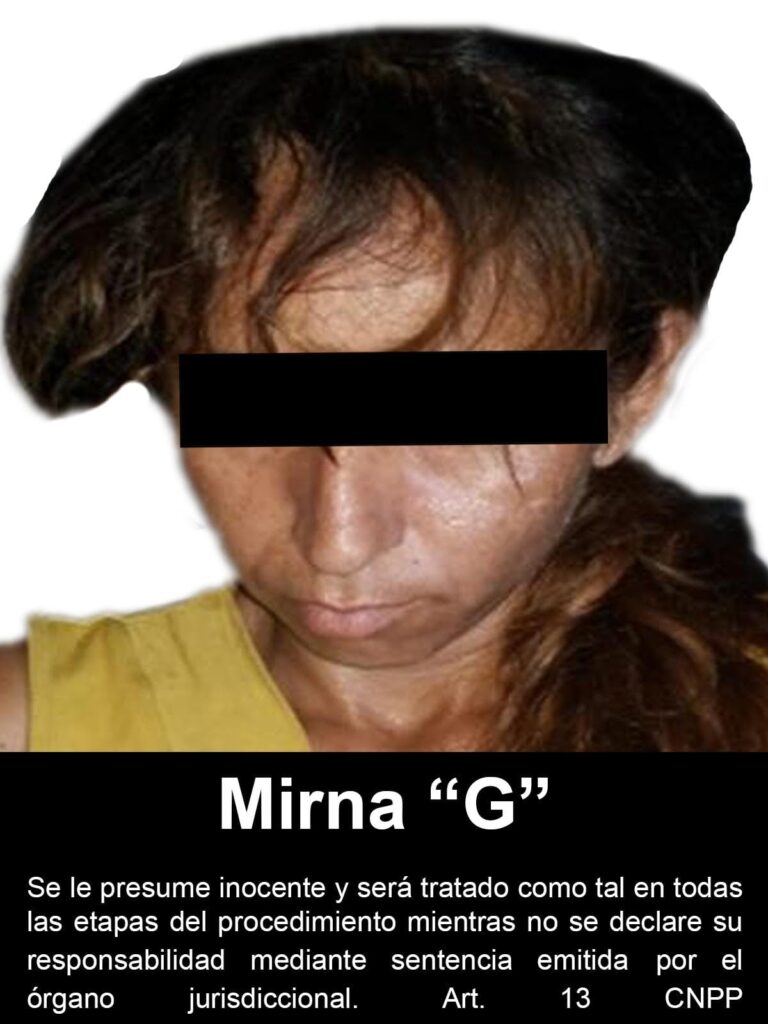 En boletín de prensa, la dependencia federal informó que, de acuerdo con la carpeta de investigación, el 10 de junio de 2021, elementos de la Secretaría de Marina-Armada de México (Semar) en coordinación con elementos de la Policía Estatal de Seguridad Pública (Pesp), en las inmediaciones del Ejido “Santa María de Guaymas”, en Empalme, detuvieron a Mirna “G”.