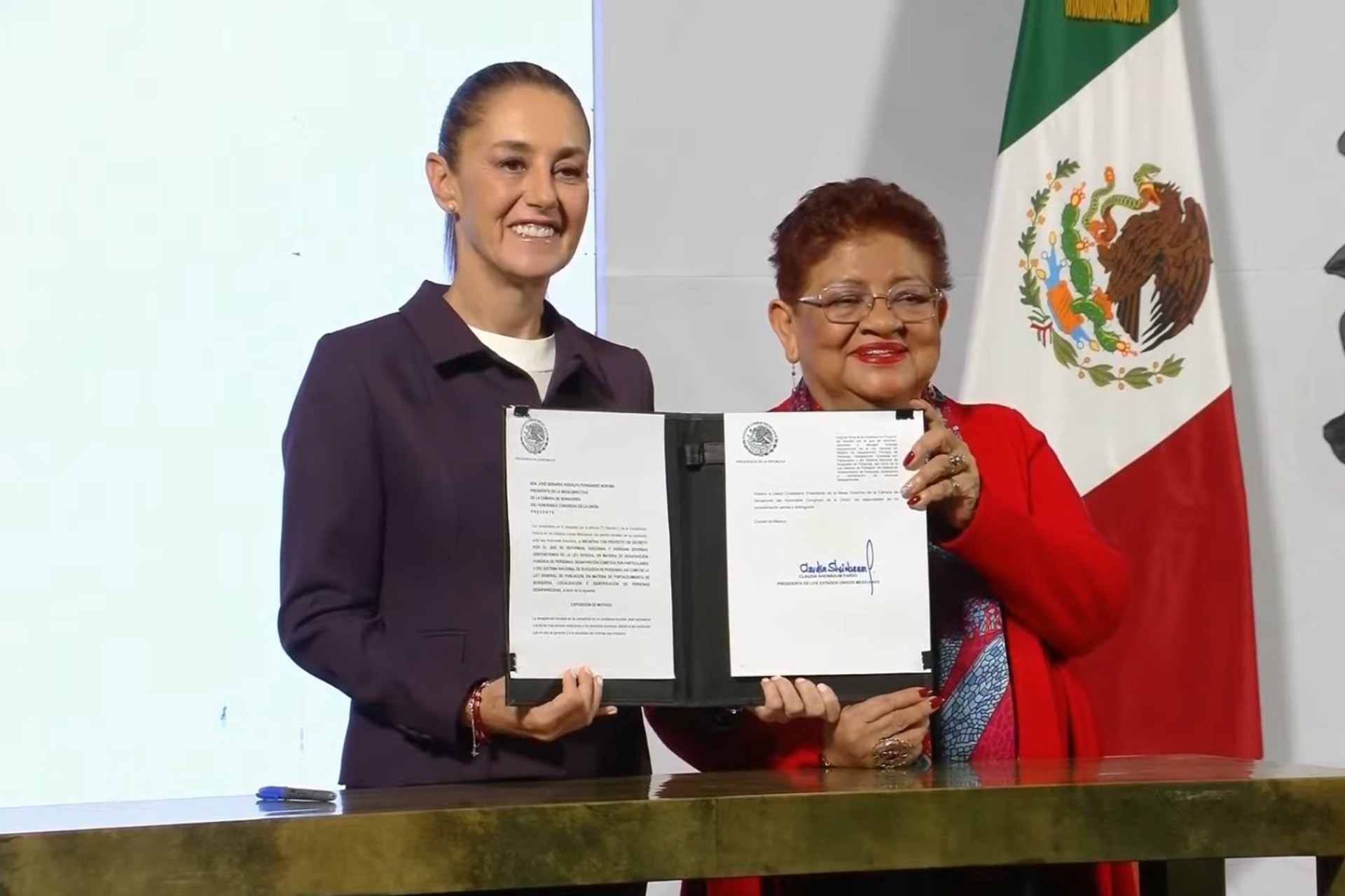 La presidenta Claudia Sheinbaum Pardo firmó y envió este miércoles al Congreso de la Unión las reformas destinadas a la prevención y atención del problema de las personas desaparecidas en México. Durante la conferencia matutina en Palacio Nacional, la mandataria firmó los documentos que modifican la Ley General de Población, la Ley General en Materia de Desaparición Forzada de Personas, Desaparición Cometida por Particulares, y el Sistema Nacional de Búsqueda de Personas.