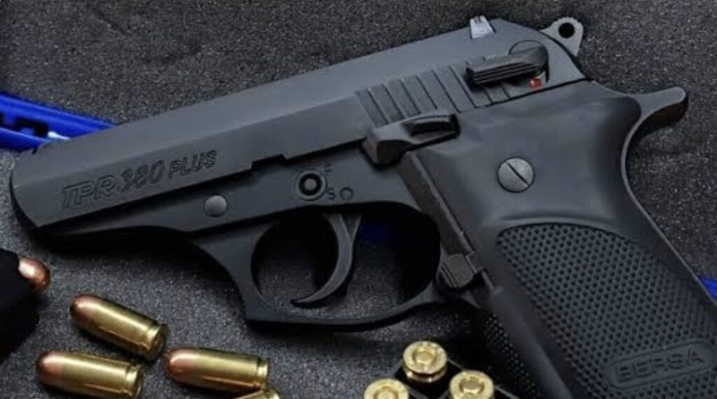 Durante la inspección corporal, se le encontró una bolsa tipo mariconera de tela color negra con la leyenda PUMA en blanco, en cuyo interior portaba un arma de fuego corta calibre .380 mm, color negro, con cachas en color café y cargador metálico negro con siete cartuchos útiles.