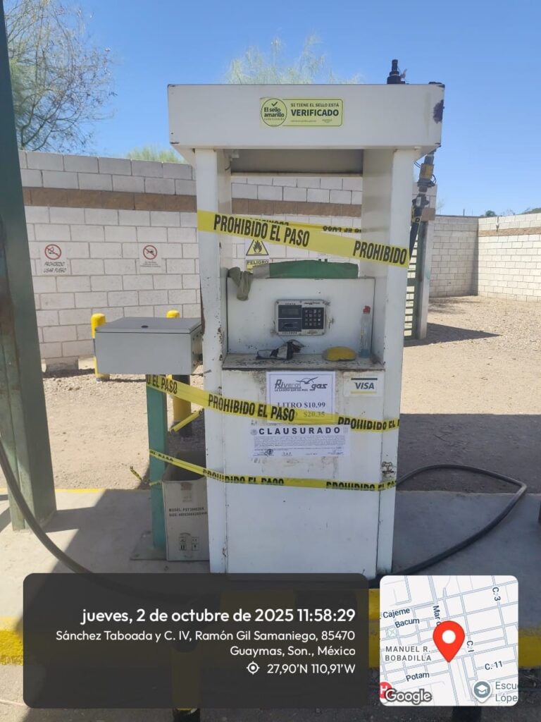 Al carecer de licencia de funcionamiento vigente correspondiente al año 2025, cuatro estaciones de carburación (gaseras), fueron suspendidas por personal de inspección de la dirección de Control Urbano en diversas colonias de Guaymas.