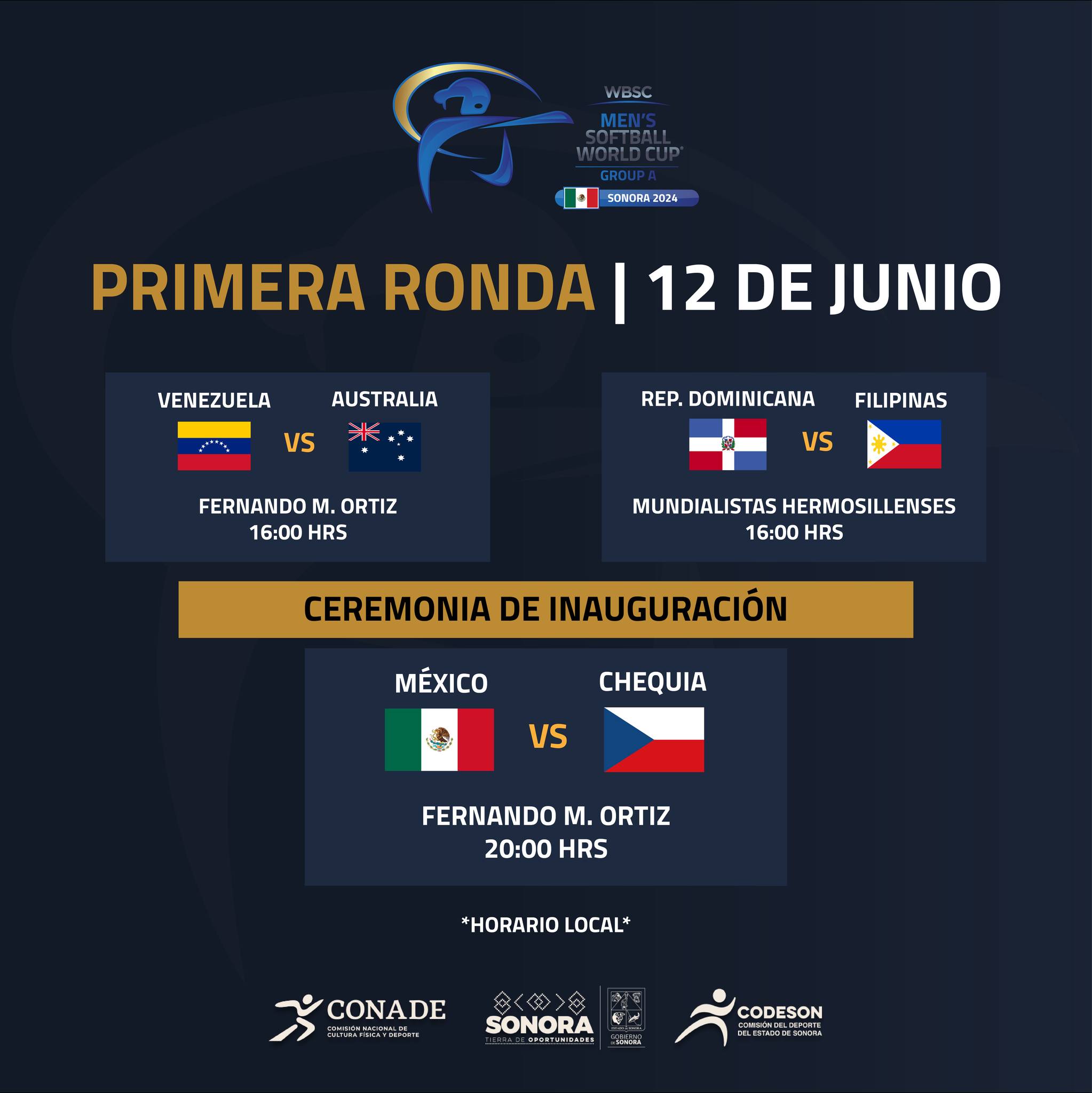 Al mismo tiempo se medirán en el “Mundialistas Hermosillenses”, República Dominicana (20) y Filipinas (14), dejando el choque estelar para las 8:00 de la noche en el estadio “Fernando M. Ortiz”, en donde el anfitrión México (9) irá contra Chequia (5), aunque previamente tendrá lugar la ceremonia inaugural.
