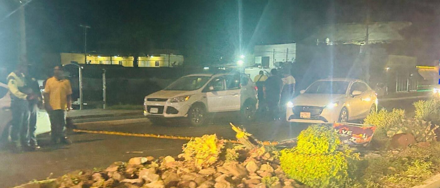 Una de las unidades participantes es un sedán blanco, con placas del estado de Sonora, modelo reciente.