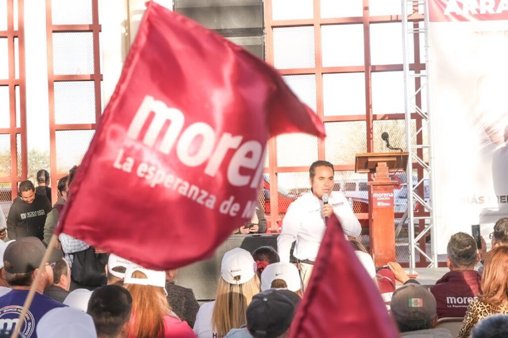 El candidato de Morena encabezó arranque de campaña con su compañera de fórmula, Lorenia Valles, en Guaymas norte donde reunió a cientos de familias que apoyan su candidatura.